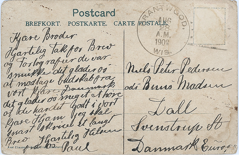 Postkort fra Poul til Peter mens han tjente hos Buus Madsen Dall